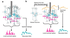 “泄漏假说” (Leakage Hypothesis):认为 HGA 主要是附近神经元尖峰通过体积传导(Volume Conduction)造成的频谱泄漏。这意味着 HGA 的波形并没有提供关于局部网络同步性的额外信息,只是噪声。
